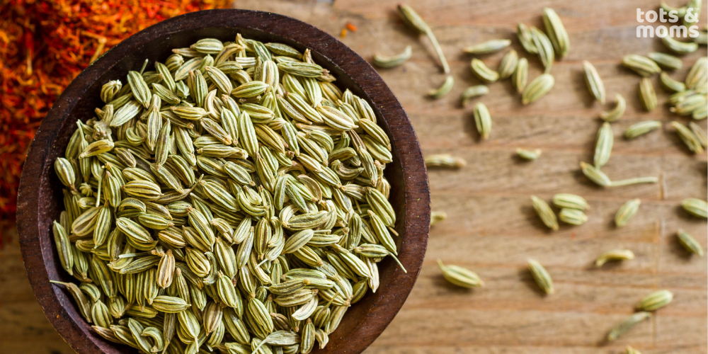 Fennel seeds are renowned for their ability to stimulate appetite, making them a delightful addition to post-meal refreshments. You add them in tadka or boil water with it and offer in sips to your child.